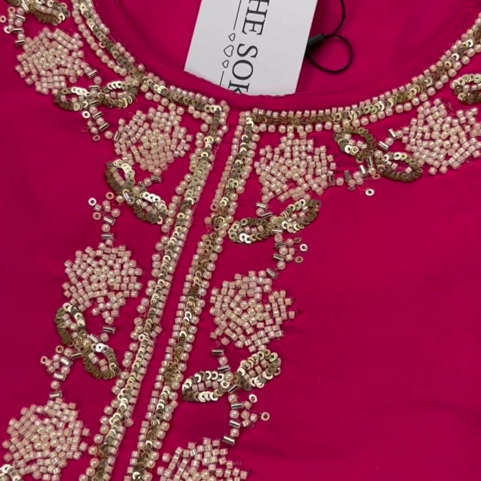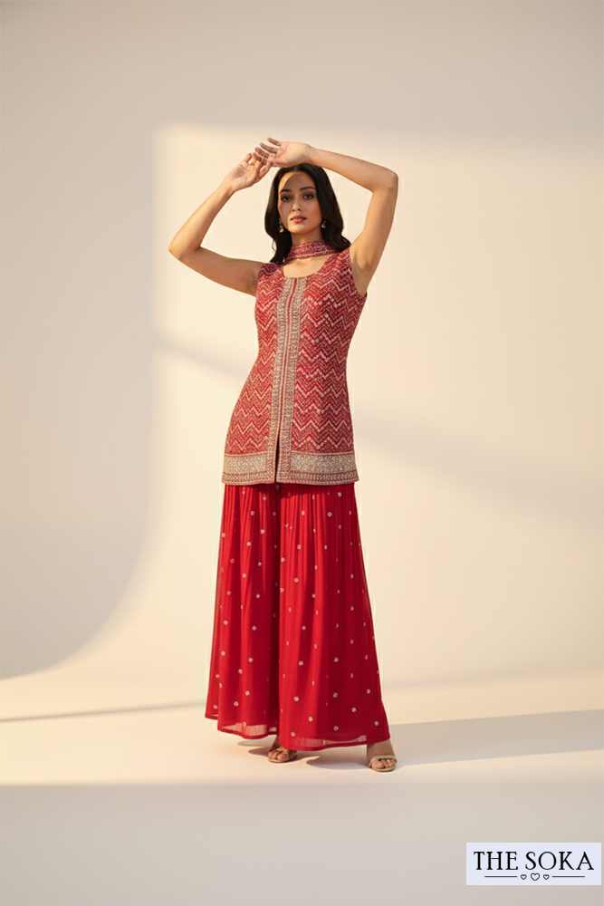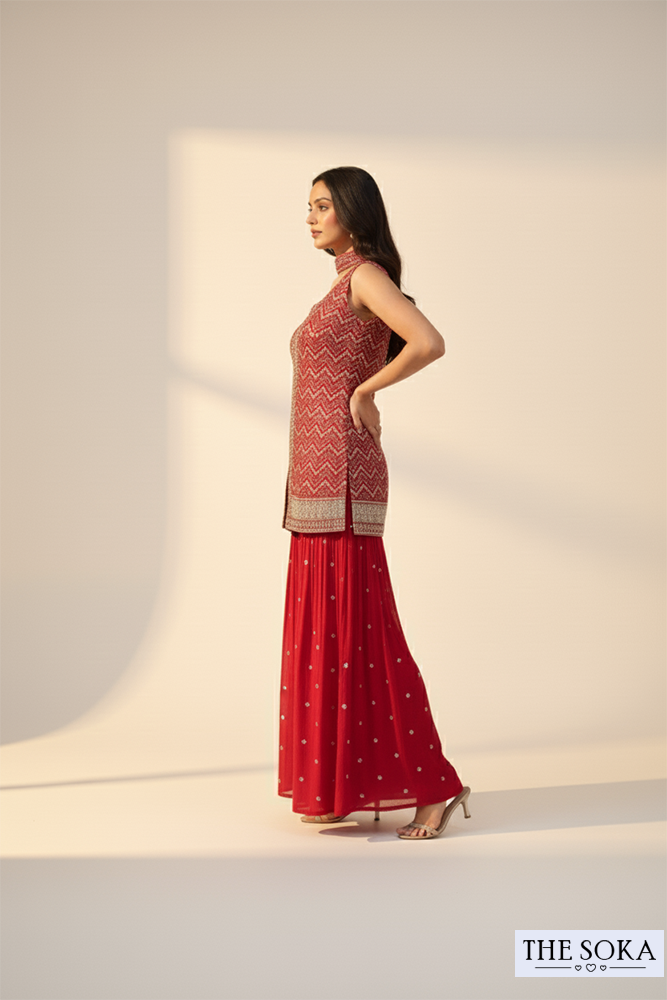Ruby Red Chevron Embroidered Sharara Set