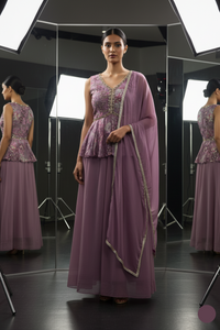 Mauve Embroidered Peplum Kurta with Palazzo Skirt and Dupatta