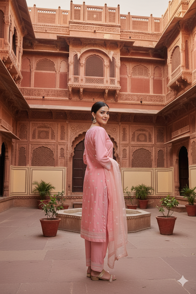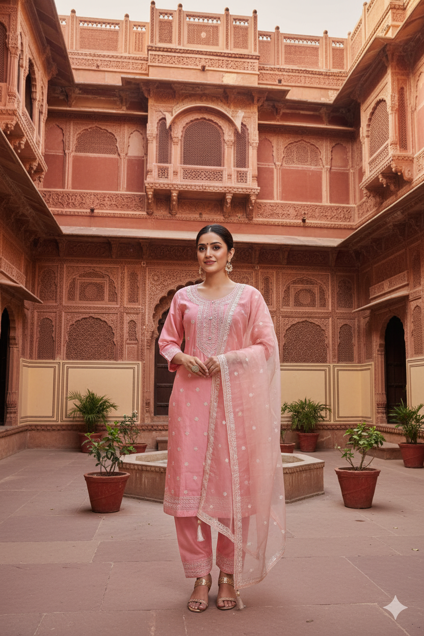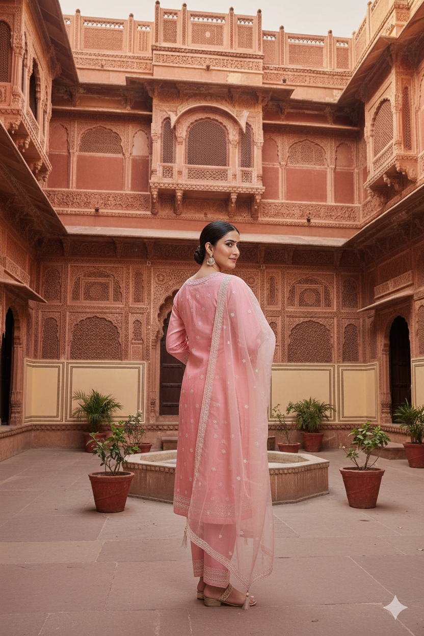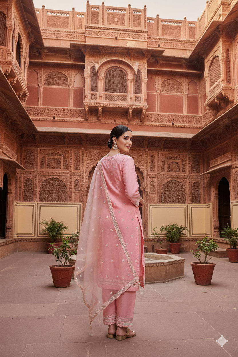 Blush Pink Straight Kurta Set with Embroidered Dupatta