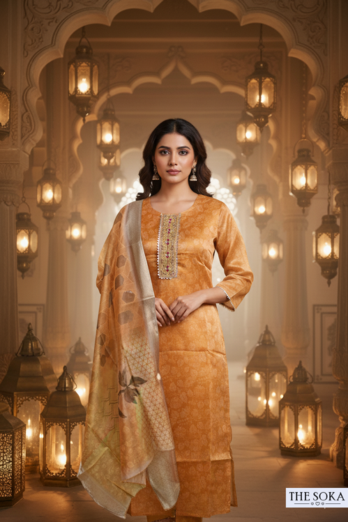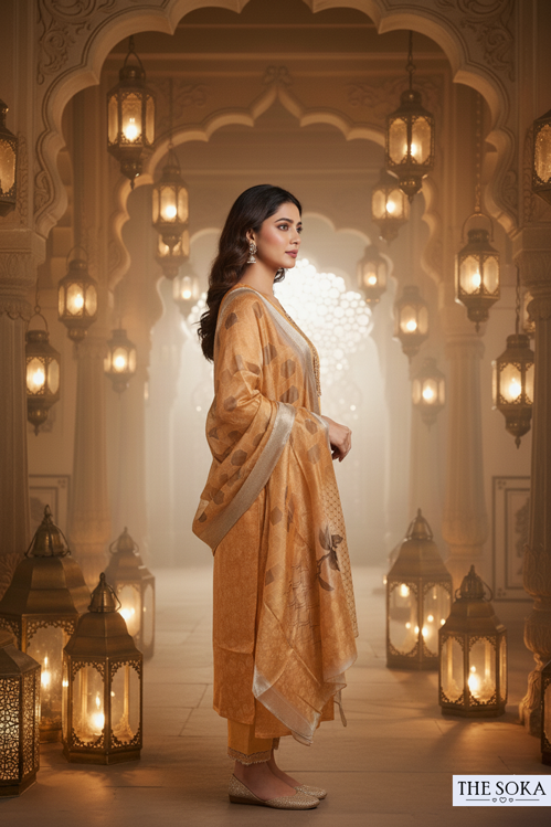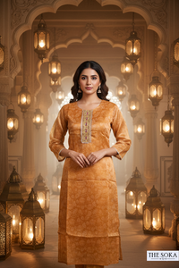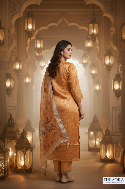 Warm Mustard Yellow Golden Aura Printed Kurta Set with Pant
