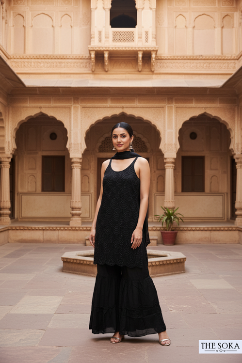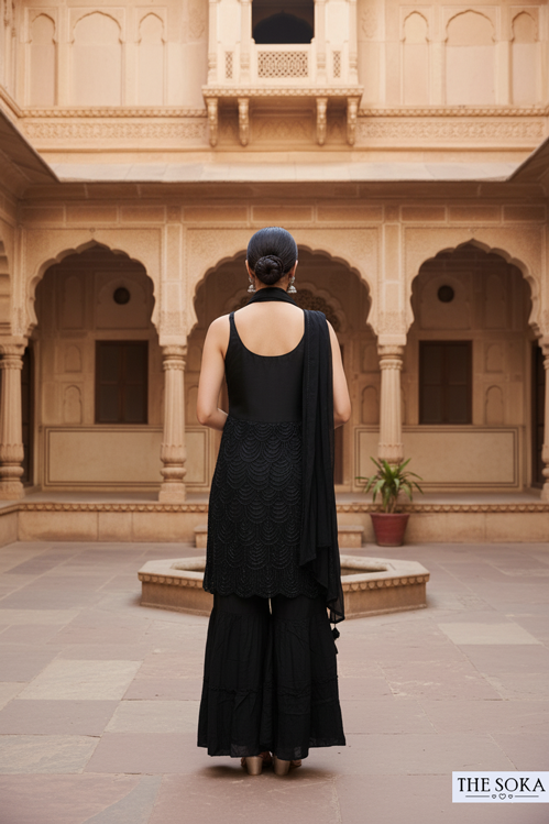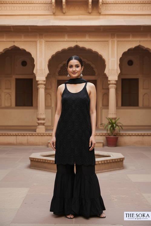 Classic Black Midnight Elegance Sharara Suit